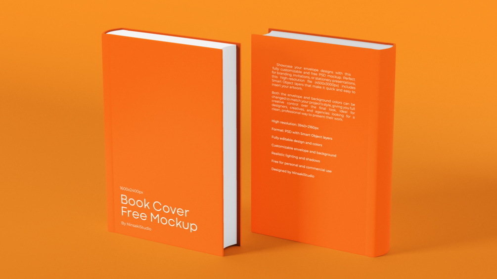 Showcase your book cover designs with this fully customizable and free PSD mockup. Perfect for branding, invitations, or stationery presentations, this high-resolution file (3840x2160px) includes Smart Object layers that make it quick and easy to insert your artwork.
